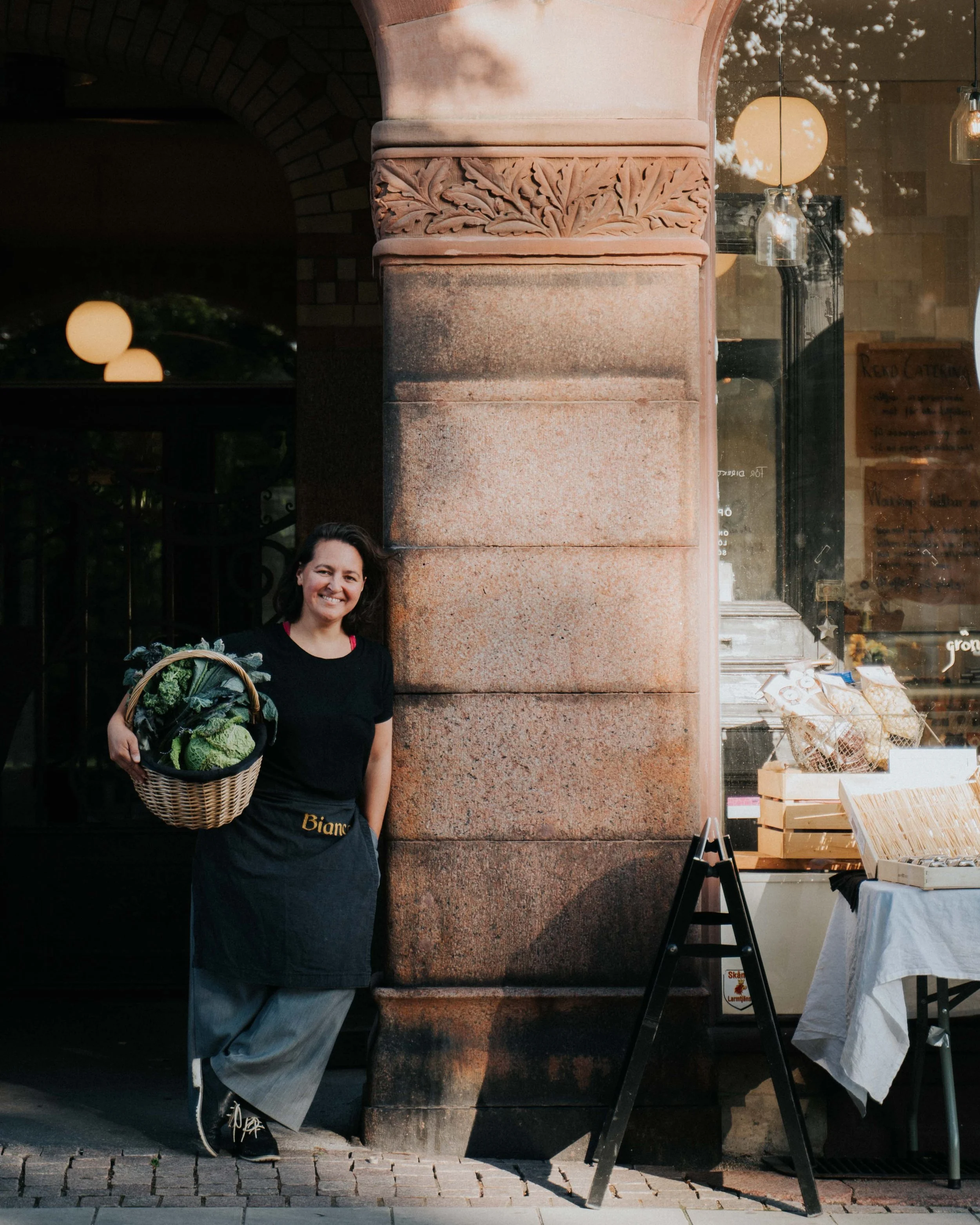 Reko Deli har catering! Där står jag Bianca (på bild), såld på att skapa god mat ur alla möjliga delar av en råvara. Inget spill! Som matkreatör och sommelier kan jag inte tänka mig något mer inspirerande än att arbeta med en genomtänkt hållbarhet i köket och det ska genomsyra alla rätter som levereras från Reko Delis kök.